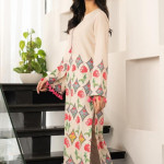 PRINTED CREAM FLORAL LONG 2PCS SET