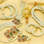 - Fancy Beautiful Navratan Choker Set With Pearls Mala
