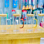Glass Tumbler with Wooden Lid & Straw 400ml, Iced Tea & Coffee Mugs for Direct Drinking , Travel Sipper Bottle For Juice, Cocktail, Smoothie