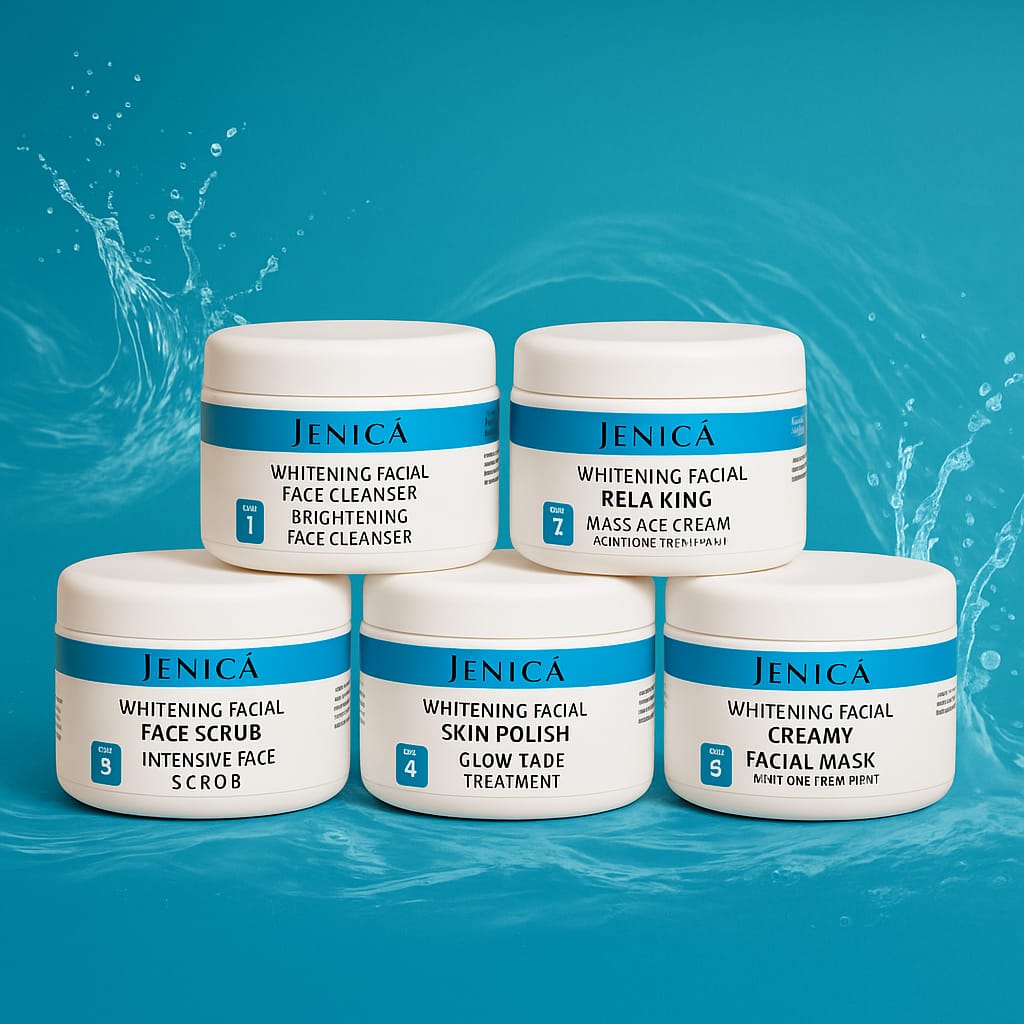 Reveal a brighter, more radiant you with the Jenica Whitening Facial Bundle, a complete 5-step skincare system expertly formulated to lighten, nourish, and rejuvenate your skin. This professional-grade facial kit is designed to target uneven skin tone, dullness, and pigmentation, giving you a visibly fairer and smoother complexion from the comfort of your home